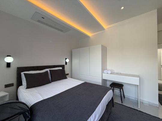 1. Yatak Odası : 1 adet çift kişilik yatak, makyaj masası, klima, elbise dolabı, komodin, Banyo&WC ve Jakuzi bulunmaktadır.