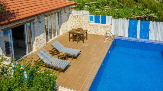 Villa Zeplin 5, Kalkan İslamlar Köyü’nde yer alan 1 yatak odalı ve korunaklı özel yüzme havuzlu çok şirin bir balayı tatil villasıdır. Dışarıdan gözükmeyen havuza sahip villamızın çok güzel bir villadır. Özel bir şekilde balayı çiftleri düşünülerek döşenmiştir.Villa Zeplin 4'de konaklayan misafirlerimiz için her ne kadar araç gerekli olsada, İslamlar Köyü merkezindeki market ve restaurant’a yürüyüş mesafesindeki yakınlığından dolayı sürekli köy içerisinde araca ihtiyaç duymayacaksınız. Tabiki de daha büyük ihtiyaçlar için Kalkan merkeze aracınız ile gitmeniz gerekecektir. Villamızın içerisinde bir yatak odası bulunmaktadır. Bu yatak odasının içerisinde çift kişilik yatak, klima, ebeveyn banyosu ve jakuzi bulunmaktadır. Villaya yakın konumda 1 oda/2 kişi kapasiteli Villa Zeplin 3 bulunmaktadır.