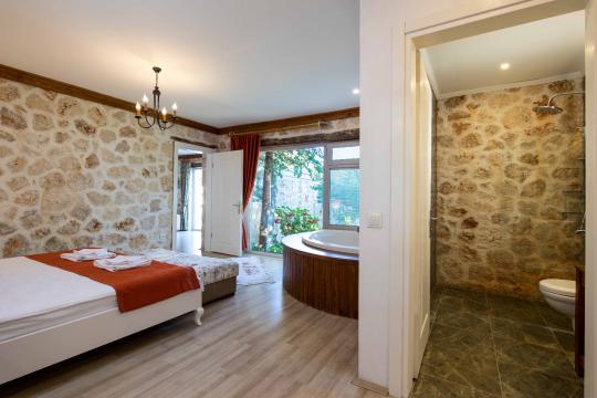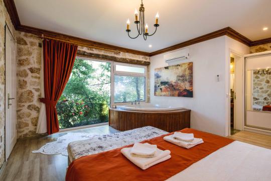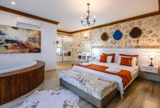 Yatak odası yatak odamızda, klima, çift kişilik yatak, jakuzi, elbise dolabı bulunmaktadır.