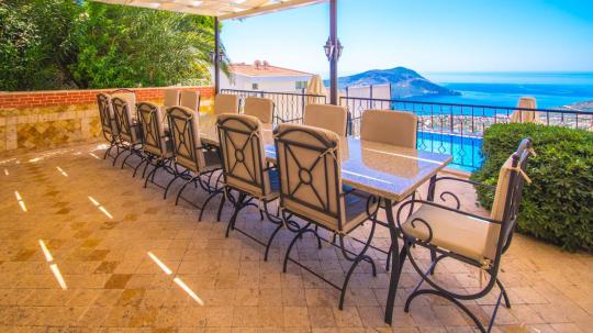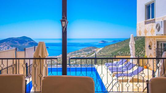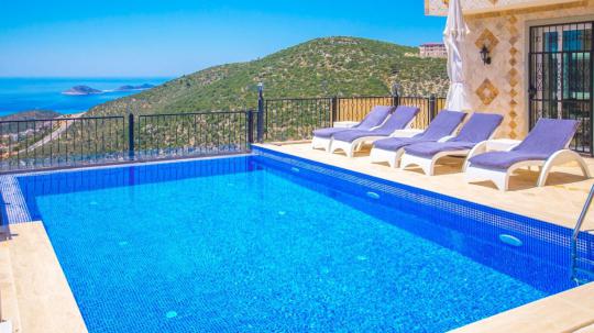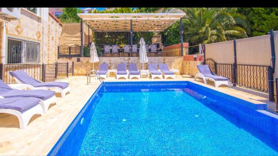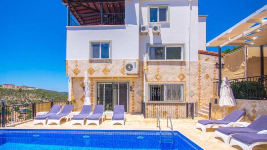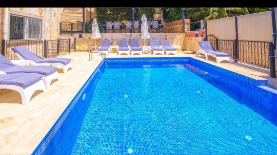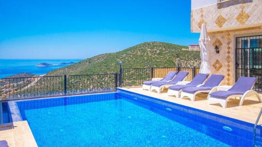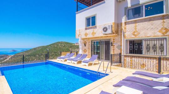 Kalkan Akbel mevkiinde bulunan, 9 yatak odalı ve 19 kişilik konaklama kapasitesine sahip lüks bir villadır. Eşsiz deniz manzarası, ısıtma sistemli kapalı havuzu ve tam korunaklı yapısıyla villa; geniş aileler, muhafazakar aileler ve kalabalık arkadaş grupalrı için uygun bir villadır.