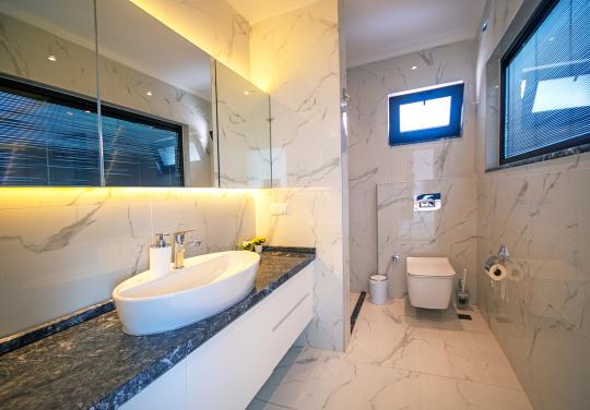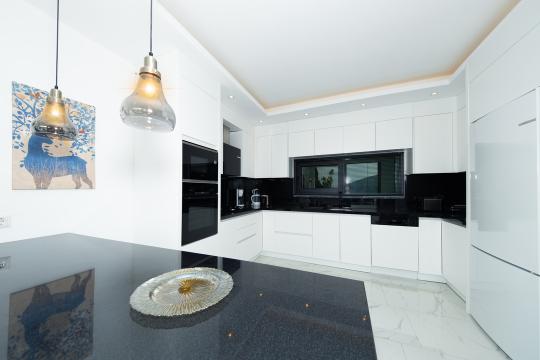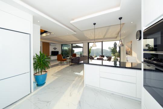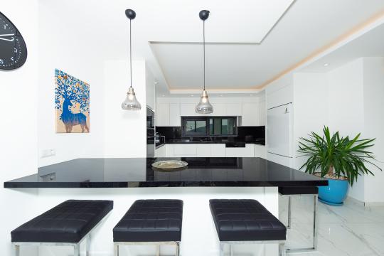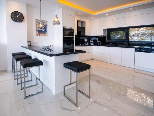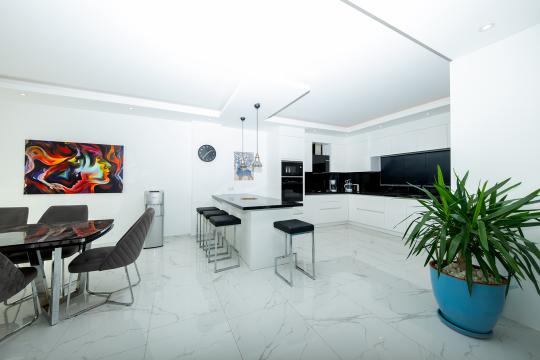 Mutfak : Modern eşyalar ile özenle dekore edilmiş Amerikan mutfak içerisinde; buzdolabı, bulaşık makinesi, ocak, fırın, mikrodalga fırın, su ısıtıcısı, yemek masası, yemek takımı ve yemek pişirme araç gereçleri yer almaktadır.
