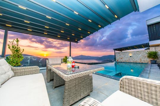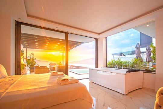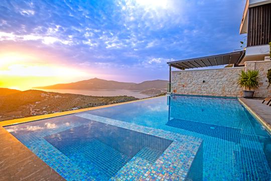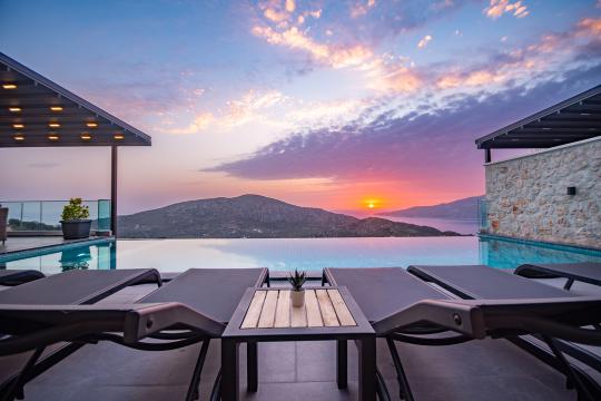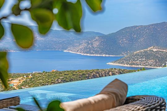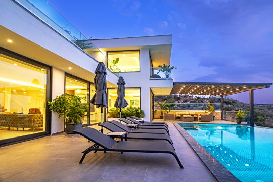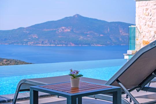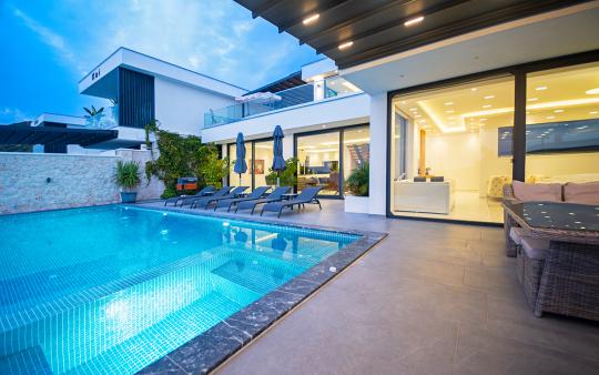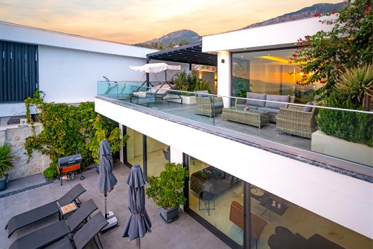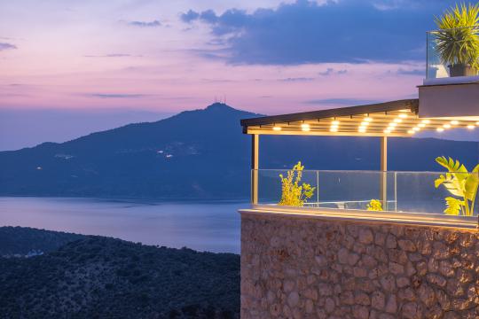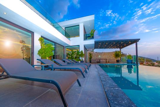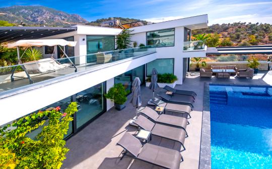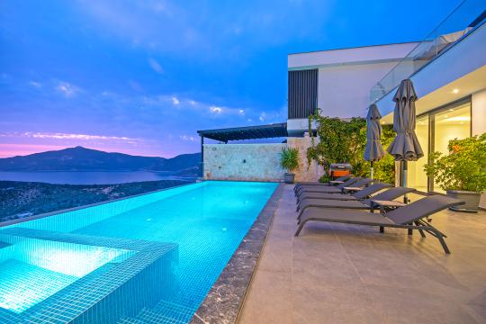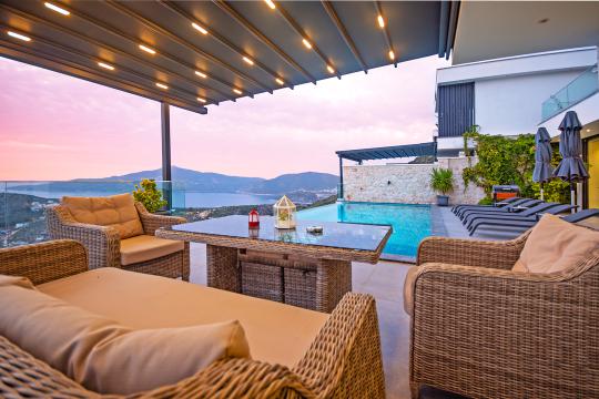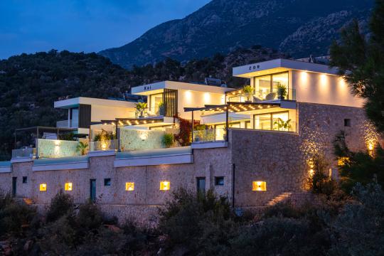 Villa Zoe, Modern çizgilerin ön planda olduğu doğa ve deniz manzaralı, 3 yatak odası ve 6 kişilik konaklama kapasitesine sahip villamız, Kalkan Ulugöl Bölgesi'nde yer almaktadır. Deniz manzarasına gün boyunca tanık olabileceğiniz villamızın korunaklı bahçesinde havuz, şezlong, salıncak, oturma köşesi, masa tenisi, barbekü ve manzara eşliğinde yemeklerinizi yiyebileceğiniz yemek masası yer almaktadır. Villa Zoe'ın modern tasarıma sahip yatak odalarından birinde jakuzi'de yer almaktadır. Geniş aileler için iyi bir tercih olan Villa Zoe, aynı zamanda ve aynı site içerisinde yer alan Villa Zoe ve Villa Kai'yi birlikte kiralayarak daha geniş aileler ve arkadaş grupları ile beraber konforlu ve keyifli bir tatil deneyimi yaşayabilirsiniz.