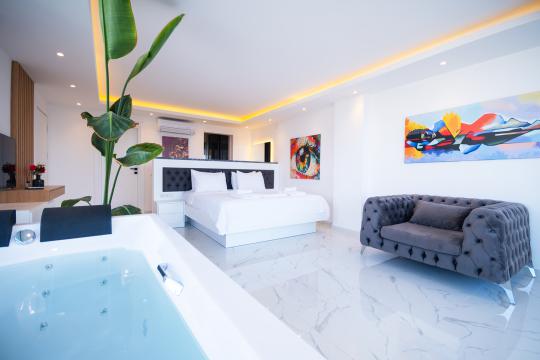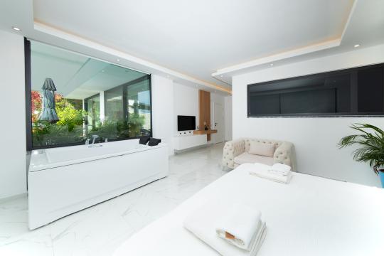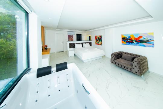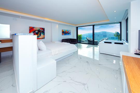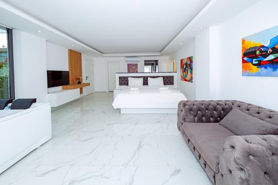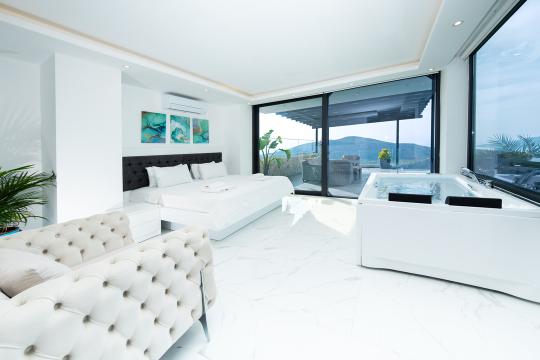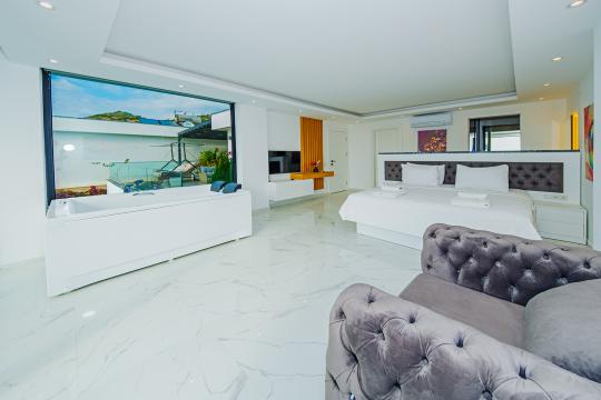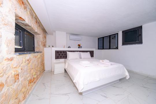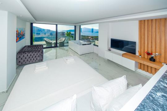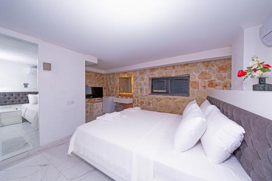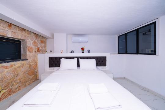 1. Yatak Odası : Çift kişilik bir adet yatak, elbise dolabı, komodin, klima, jakuzi, banyo ve tuvalet bulunmaktadır. (Deniz Manzaralıdır.)