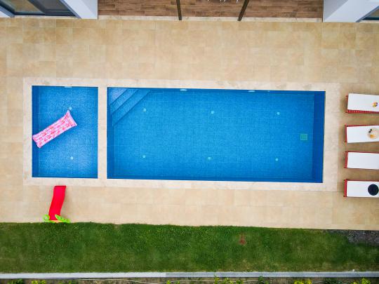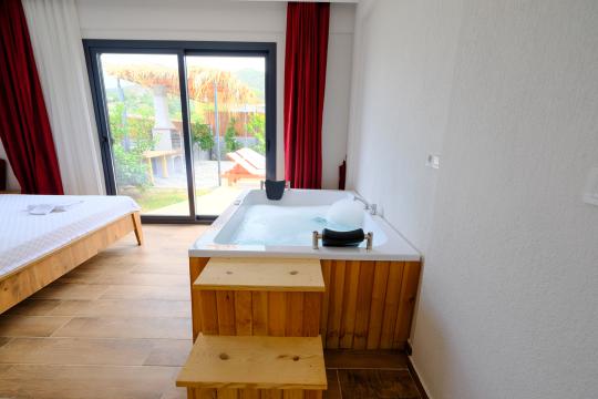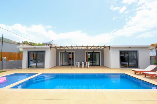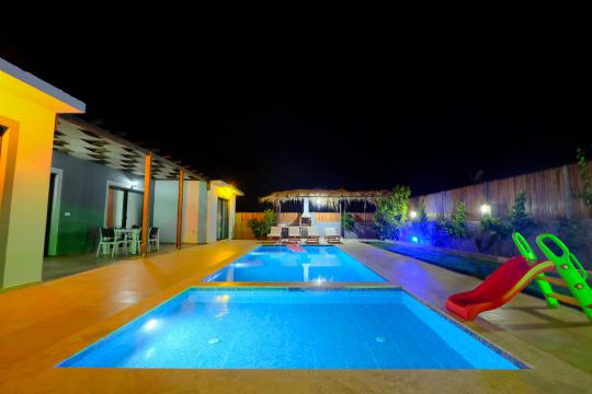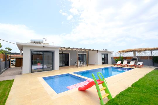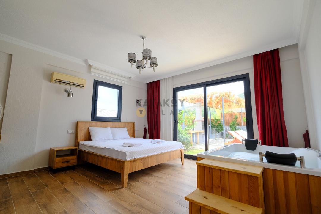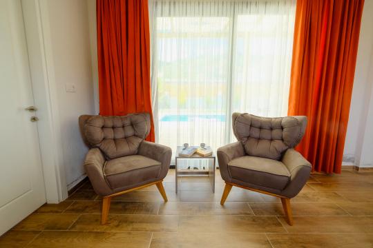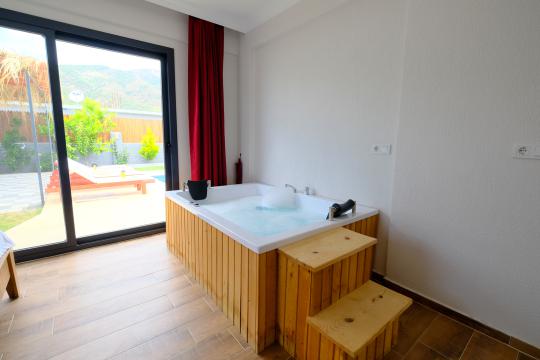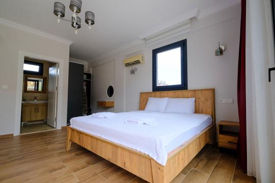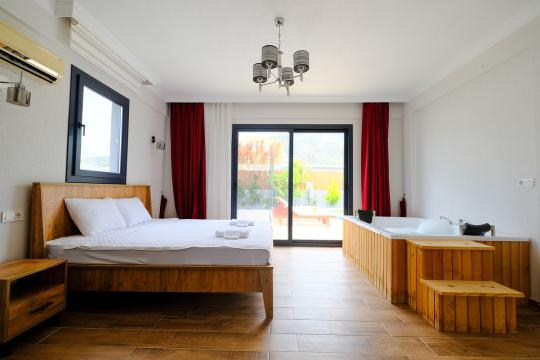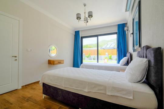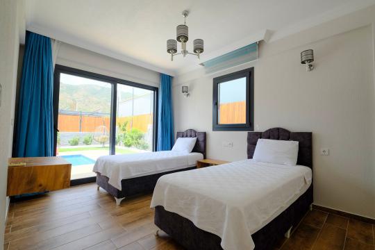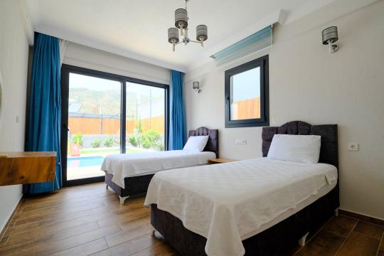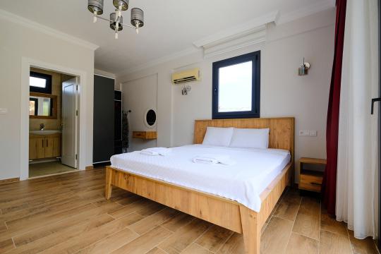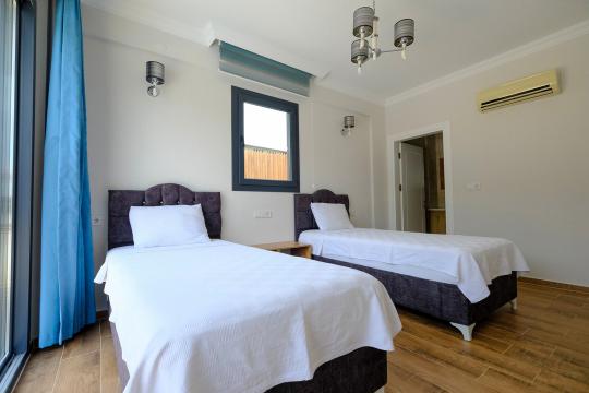 Villamızın içerisinde iki yatak odası bulunmaktadır. Birinci yatak odasında bir adet çift kişilik yatak, ebeveyn banyosu, klima ve jakuzi yer almaktadır. İkinci yatak odası içerisinde iki adet tek kişilik yatak, ebeveyn banyosu, klima mevcuttur. Ortak alanda ise açık mutfak - salon, klima, TV ve oturma alanı yer almaktadır. Toplamda 4 kişinin rahatlıkla konaklayabileceği villamız unutulmaz bir tatil için sizleri beklemektedir.
