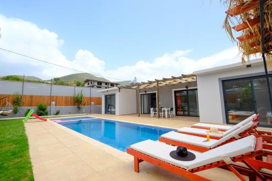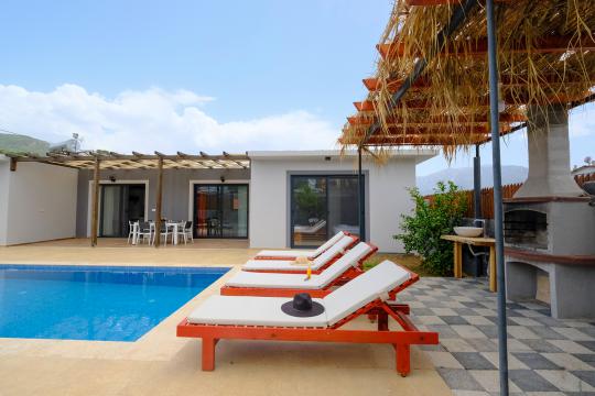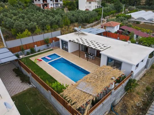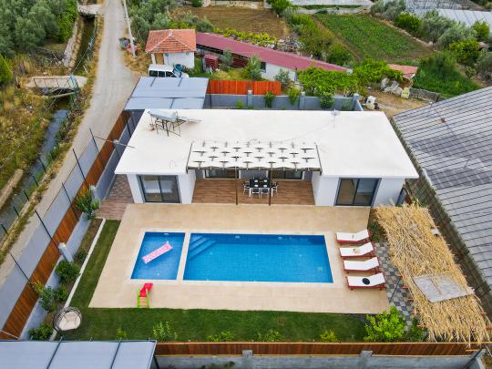 ÖNEMLİ NOT :Villamızın bulunduğu bölge Fethiye'nin kırsal mahalle bölgelerindendir. Sessiz ve sakin konumda yer almaktadır. Villanın yakın çevresinde tarımsal aktivite yapılan seralar mevcut olabilmektedir.